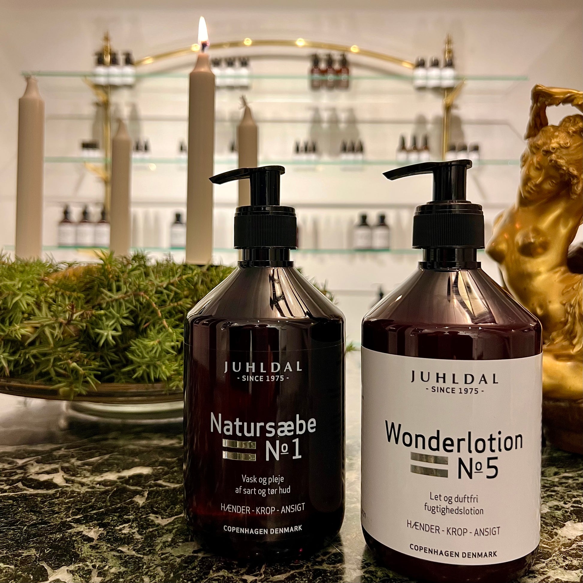 JUHLDAL NaturSæbe No1 og Wonderlotion No5 begge i 500ml